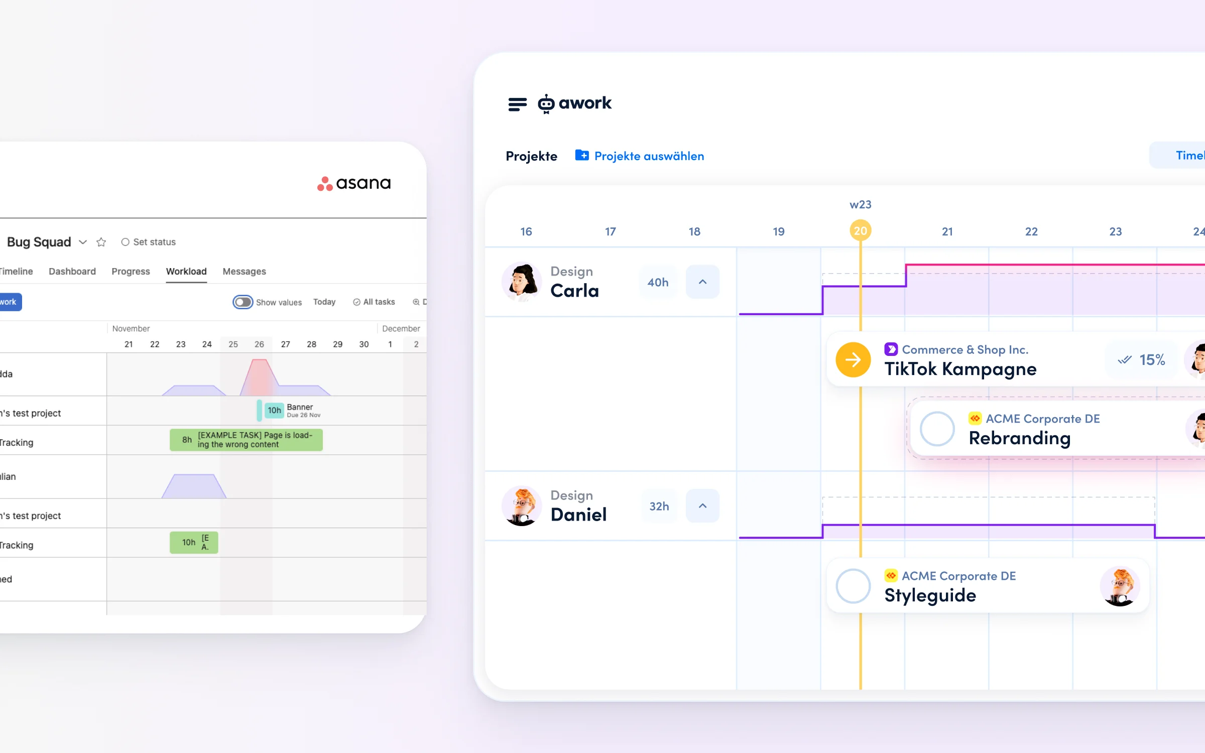 Kurz gesagt: awork ermöglicht eine verlässliche Auslastungs‑ und Margensteuerung, während Asana hauptsächlich Aufgaben organisiert.
